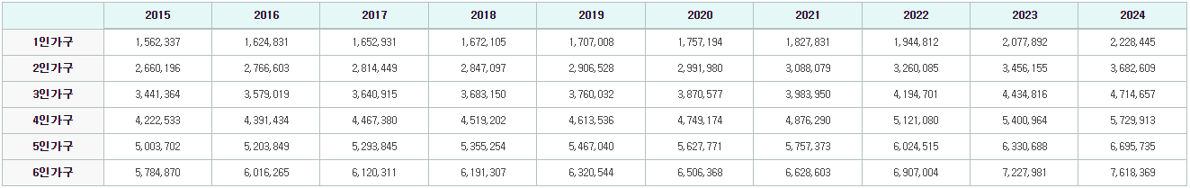 기준중위소득은 세전 기준으로, 비과세 소득을 제외한 이자, 배당, 사업, 근로, 연금 소득 등 전체 소득을 말합니다. 참고로 홈택스 소득금액증명을 발급받아 12개월로 나누면 월 소득을 알 수 있습니다.